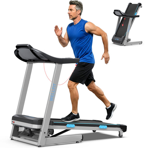Home Treadmills 15% Auto Incline, 4.0HP Treadmill 400lbs Capacity, Foldable Treadmill for Small Space, Voice Control, Easy to Move, Music Players, 45 * 18 Long/Wide Stride, 95% Assembled, Space Saver